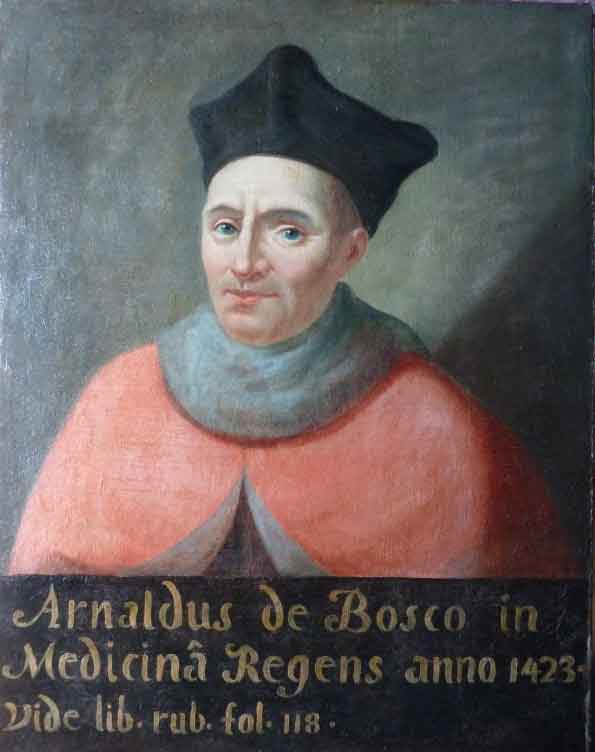 Arnaldus de Bosco reste une personnalité peu connue et pour laquelle nous disposons de peu d’informations. Écolier des arts à Toulouse en 1378, il devient maître et médecin-régent en 1423 avec Bernard Salarti, et occupe toujours cette fonction en 1439.