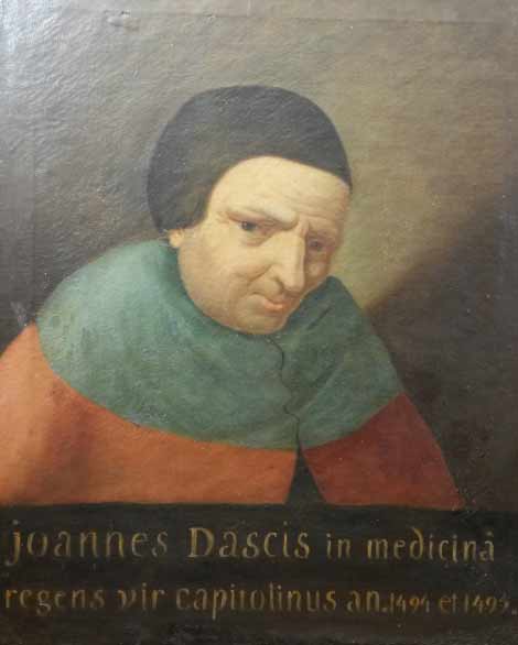 Les seules informations dont nous disposons à propos de Joannes Dascis sont celles qui se trouvent inscrites en lettres dorés sous son portrait. Ainsi Jean ou Joannes Dascis fut capitoul de Toulouse en 1494 et 1495.