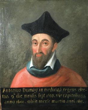 Professeur à la Faculté de médecine dès 1588 à la chaire d’hygiène et thérapeutique, Antoine Dumay reste quelqu’un de discret, laissant la publication d’ouvrages à d’autres auteurs.