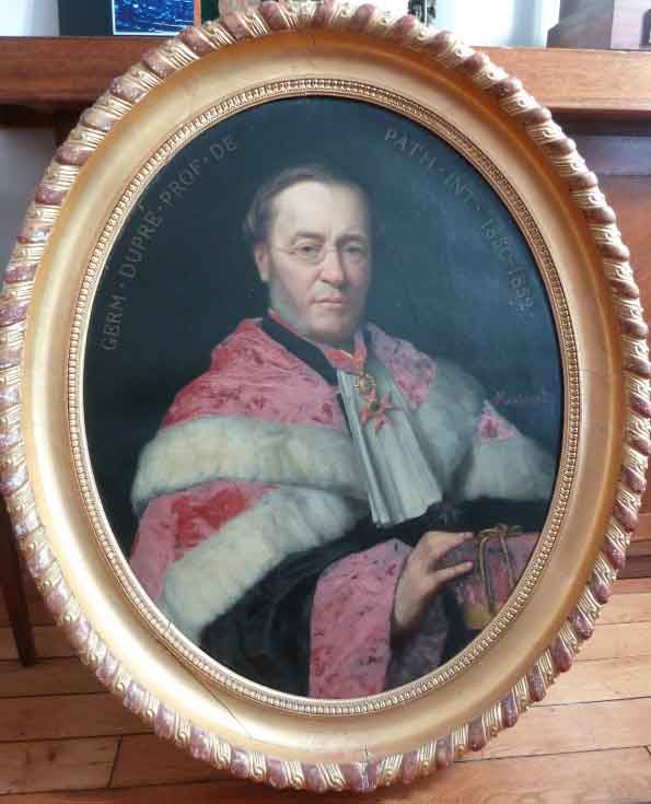 Le costume, le style capillaire et en particulier les magnifiques favoris donnent des indices pour dater ce portrait de la deuxième moitié du XIXe. Il reste à ce jour le dernier anonyme de cette série de portraits de la Faculté de médecine. L’enquête continue…